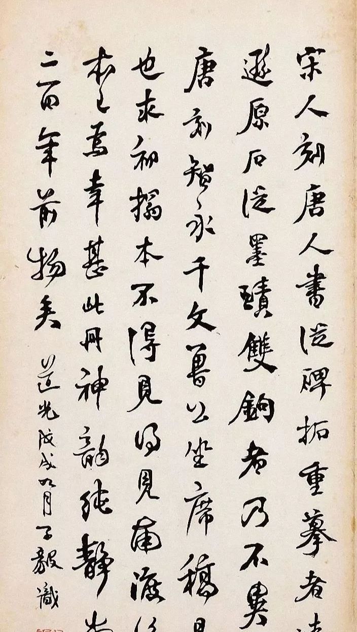 有宋人刻唐人书,从碑拓重摹者远逊原石,从墨迹双钩者乃不异于唐刻。智永千文,鲁公坐席稿是也。求初搨本不得见,得见南渡后本已为幸甚。此册神韵纯静,当二百年前物矣。道光戊戌九月子毅识