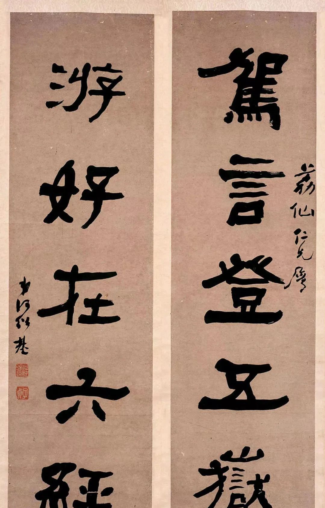 此联笔致矫健挺拔,整幅气势磅礴,极有雄强之美。