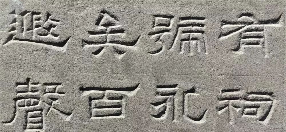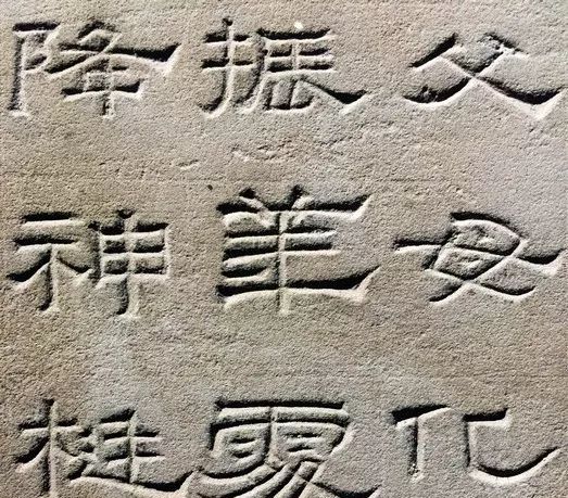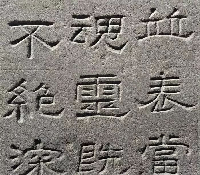 纵观景云碑全篇,文字结体较为方整严谨,与多数东汉隶书字形的圆润舒展有别。部分文字的横、撇、捺、钩等笔画收尾处锋芒毕露,体现出接近魏晋隶书的特点。如“魂”、“追”等字,主横画意气沉雄,强调笔力,收尾处却以燕尾蓄势高挑,颇为夸张。